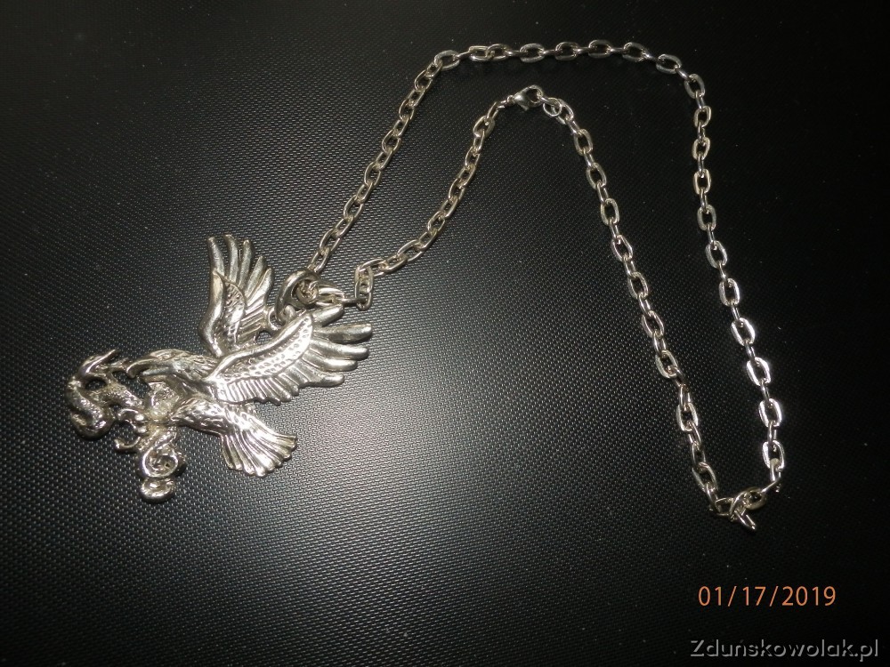 Posiadam do sprzedaży wisiorek /zawieszkę na łancuszku z zapięciem/ z orłem trzymającym w szponach węża. Bardzo ciekawa metaloplastyka dla osób , które lubią nosić tego typu ozdoby. Zapraszam do zakupu.