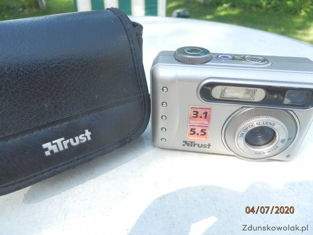 Mam do sprzedania malutki aparacik cyfrowy marki Trust 920 z futerałem i paskiem na rekę. Aparat mało używany ale jest w pełni sprawny i robi fajne zdjęcia. Jego prosta obsługa pozwala rekomendować go dla starszych osób wybierających się na wycieczki w plener, na pobyt w sanatorium lub zwykłe spacery rekreacyjne. Z uwagi na niską cenę, można go podarować najmłodszym by próbowali swych umiejętności fotografowania wszystkiego co nas otacza. Ten mały aparacik posiada matrycę 3MP i 4-krotny zoom cyfrowy. Daje możliwość nagrywania filmów video z głosem /ma wbudowany mikrofon i głośnik/. Aparat działa z kartą SD i zapisuje zdjęcia w formacie JPEG co pozwala na zapisanie 268 zdjęć. Zdjęcia można robić z lampą błyskową z zachowaniem redukcji efektu "czerwonych oczu". Wyświetlacz o wymiarach 4 cm. pozwala kadrować zdjęcia i sekwencje filmu video. Zasilanie aparatu to 2 baterie 1.5V AA. Zapraszam do zakupu bo to okazja dla np.seniorów.Dodaję do zakupu kartę pamięci.