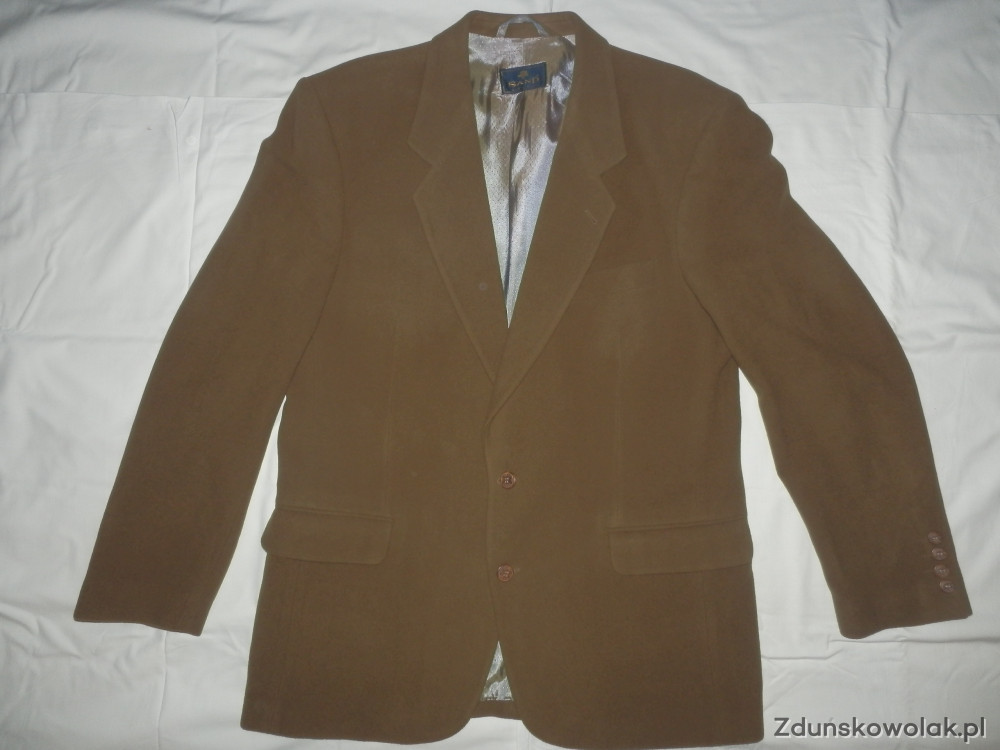 Sprzedam ciepłą, beżową marynarkę męską rozmiaru 52.na wzrost 170-175cm. Jest ona w bardzo dobrym stanie - niewiele używana. Wykonana z 65% WOOL/ULD i 35%Viscose. Zapraszam do przymiarki i zakupu.