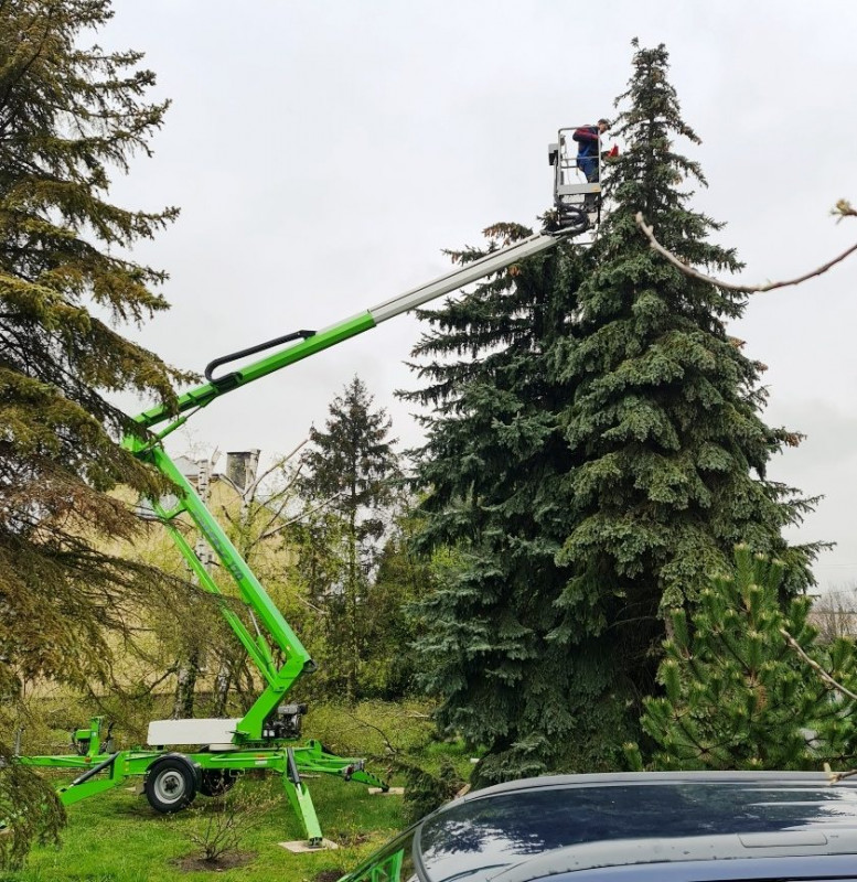 Posiadamy podest marki Niftylift model 210 o wysokości roboczej 21 m i wysięgowi bocznemu 12 m, udźwig - 225 kg. Masa podestu tylko 3,5 tony (nie zniszczy trawy i kostki brukowej).
