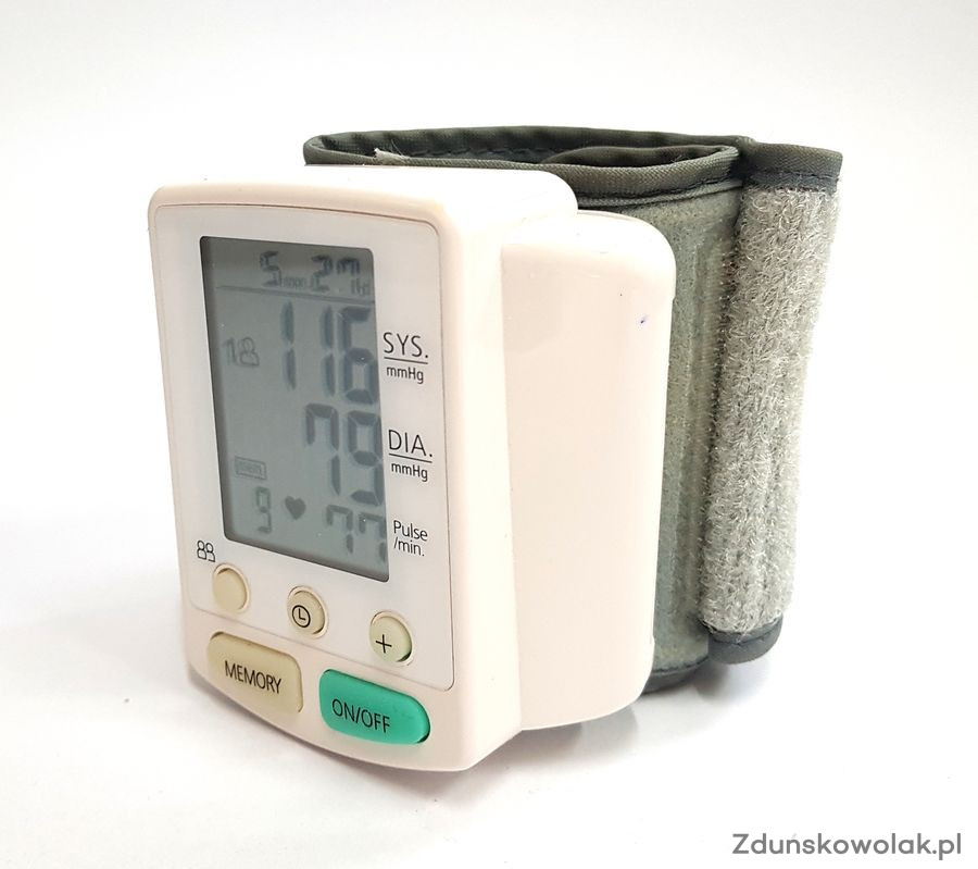 wyświetlacz LCD z funkcjami: data, czas, ciśnienie skurczowe i rozkurczowe, puls