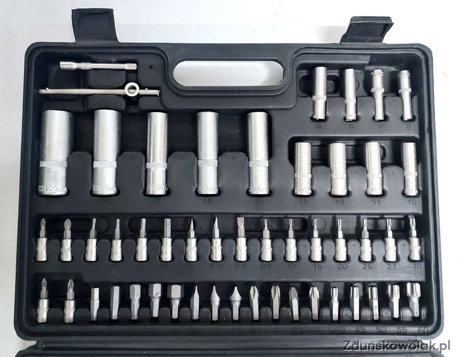 Zestaw kluczy 108 el. jest zapakowany w praktyczną miękką walizkę. Nasadki odznaczają się doskonałą wytrzymałością mechaniczną, oraz dużą odpornością na ścieranie, grzechotki posiadają MOCNE zębate mechanizmy. Pełen Pakiet nasadek zapewni doskonałe dopasowanie klucza do danej potrzeby w każdym miejscu pracy.