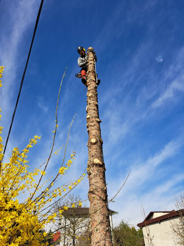 Wycinka drzew trudnych metodą dostępu linowego.