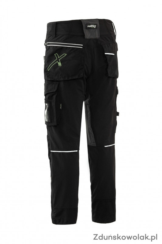 Do szycia spodni wykorzystano wysokiej jakości elastyczny materiał o charakterystyce softshellu. Dodatkowo w spodniach zamontowano aktywny pas z podwyższonym stanem z tyłu. Dzięki temu komfort użytkowania jest wysoki nawet przy wielogodzinnej pracy w wymuszonej pozycji. Dodatkowo wykonano otwory wentylacyjne odpinane na zamek, które pozwalają na wypuszczanie nadmiaru wilgoci i ciepła.