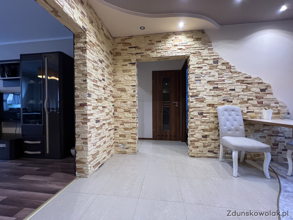W pokojach na ścianach gładzie, podłogi wyłożone panelami. Częściowo na ścianach dekoracyjne elementy z piaskowca.
