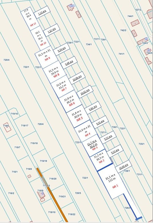 Działka nr 4 : wymiary 31,6m x 31m = 9,51 ar
