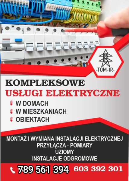 Wykonujemy kompleksowe usługi instalacji elektrycznych w domach, mieszkaniach i obiektach. Montaż przyłączy elektrycznych, uziomów oraz instalacji odgromowych. Wykonujemy pomiary. Posiadamy uprawnienia SEP. Prace wykonujemy terminowo. Konkurencyjne ceny od całości usługi. Dojazd do klienta celem dokonania darmowej wyceny i ustaleniu zakresu prac.