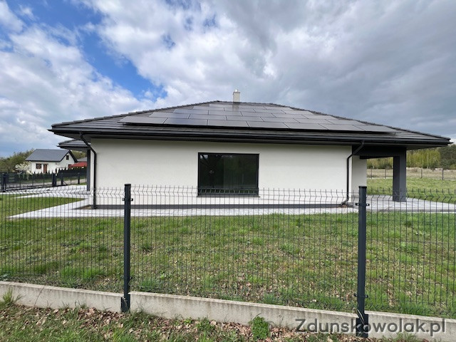 Instalacja fotowoltaiczna o mocy 8,75 kWp wykonana z paneli polskiej firmy Bruk-Bet Solar. Panele monokrystaliczne Extreme Plus BEM 350 z gwarancją wydajności na 25 lat, inwerter Solis 3P8K-4G z 10 letnią gwarancją producenta. Obecnie instalacja ma nadprodukowaną energię 8298 kWh, mimo ogrzewania budynku przez pompę ciepła. Instalacja pracuje na starych zasadach rozliczania energii tj. w systemie net-metering, zakładamy, że przyszły użytkownik będzie płacił tylko opłaty stałe za energię elektryczną, ze względu na niskie żużycie energii dla potrzeb ogrzewania budynku.