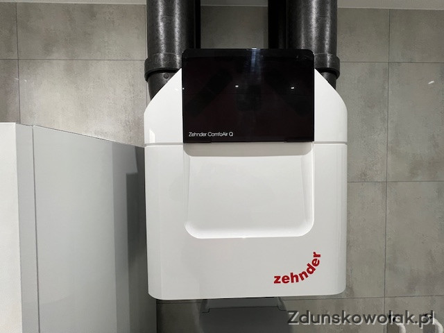 Wentylacja mechaniczna nawiewno-wywiewna z odzyskiem ciepła we wszystkich pomieszczeniach z wyjątkiem garażu gdzie jest wentylacja grawitacyjna. Zastosowany rekuperator Zehnder ComfoAir Q350 zapewnia komfortową i energooszczędną eksploatację instalacji wentylacyjnej niezależnie od warunków pogodowych. Zastosowane filtry G4 lub F7 zapewniają skuteczne oczyszczenie powietrza zewnętrznego z pyłków alergicznych oraz zanieczyszczeń ze spalania paliw stałych.