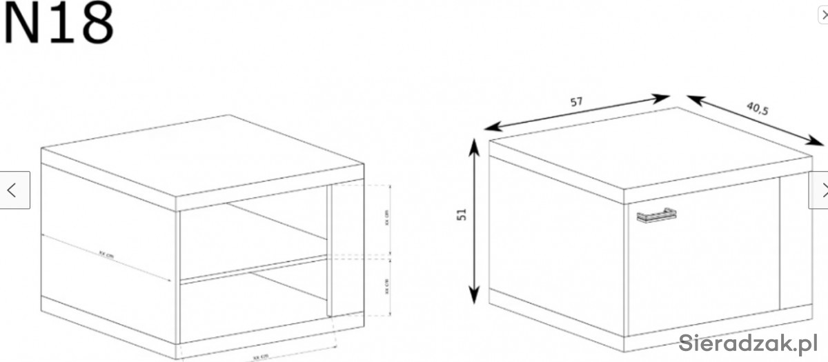 2. Stolik nocny NATURAL N 18 (57*40*51(h)cm.) - 285 zlotych.(2 szt)