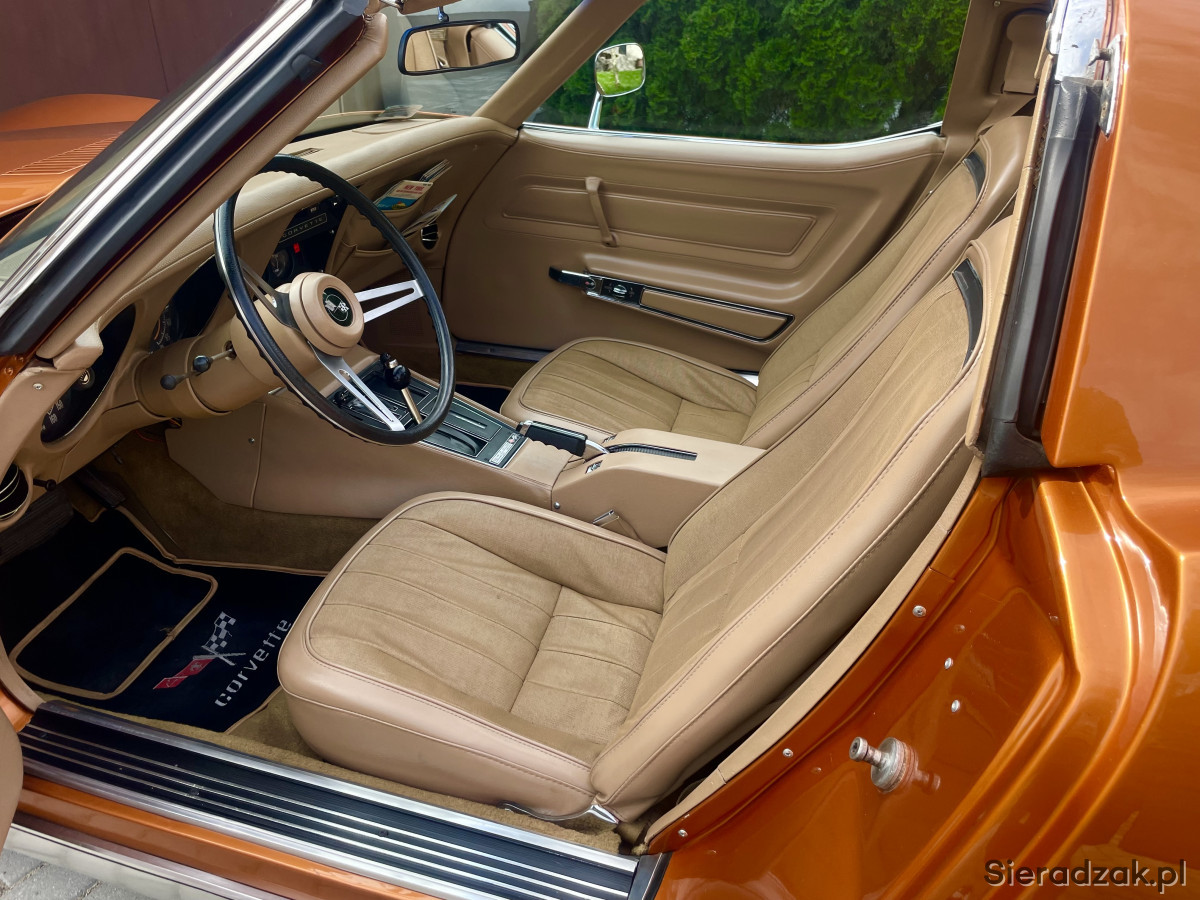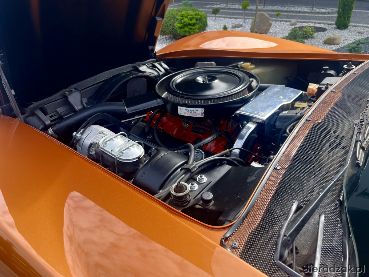 Do sprzedania corvette c3 1974 5.7 , doinwestowana , lakier idealny , odnowiony w profesjonalnym zakładzie trudniącym sie zabytkami - posiadam zdjęcia z procesu renowacji , bardzo dużo nowych częsci , z ważniejszych rzeczy ; kompletne dywany , uszczelki drzwi i szyby , mechanizm obrotomierza , łączniki stabilizatora przód+tył , linki hamulca ręcznego + klocki , gumy ramy , klamki i lusterka , tylne lampy , wskaźnik poziomu paliwa znajdujący się w baku , aparat zapłonowy , przewody , świece , paski klinowe , silnik uszczelniony , powymieniane uszczelki , olej w silniku + filtr VALVOLINE MAX LIFE , olej +filtr skrzyni biegów , płyny eksploatacyjne , komora silnik odnowiona - idealna , wnętrze w super stanie poddane detailingowi , fotele oryginał , podnoszenie lamp zregenerowane , opony idealne , rama zdrowa , spód zachowany w bardzo ładnym stanie -zdjęcia , elektryka sprawna , działa każde podświetlenie wnętrza , zegarek i radio sprawne , silnik pracuje bardzo ładnie , skrzynia zmienia biegi płynnie , zawieszenie bez luzów , hamulce sprane , jako ciekawostka corvette posiada oryginalny alarm, załączany kluczykiem po przekręceniu zamka znajdującego sie w lewym przednim błotniku ,numer silnika zgodny z numerem VIN , auto jest moją własnością użytkowane weekendowo , do spokojnej jazdy , mozliwość sprawdzenia na stacji diagnostycznej , real foto , auto odrestaurowane profesjonalnie z dbałością o szczegóły , pozdrawiam ,