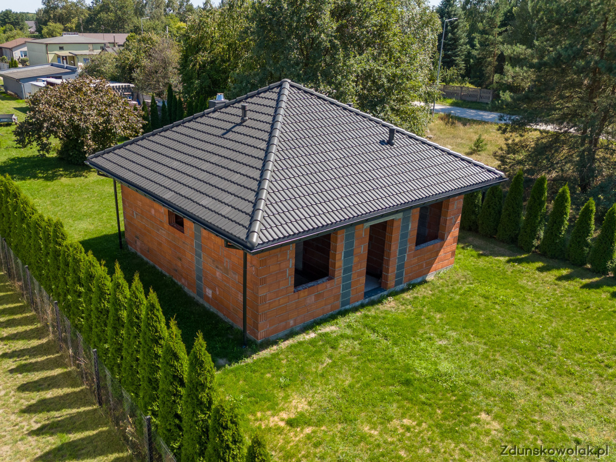 Na sprzedaż dom w stanie surowym otwartym, parterowy o powierzchni zabudowy 72,76 m², położony na prestiżowym osiedlu Nowe Miasto w Zduńskiej Woli, przy ulicy Czeremchy. Nieruchomość znajduje się na działce o powierzchni 755 m², która jest ogrodzona i posiada bramę wjazdową oraz liczne nasadzenia.