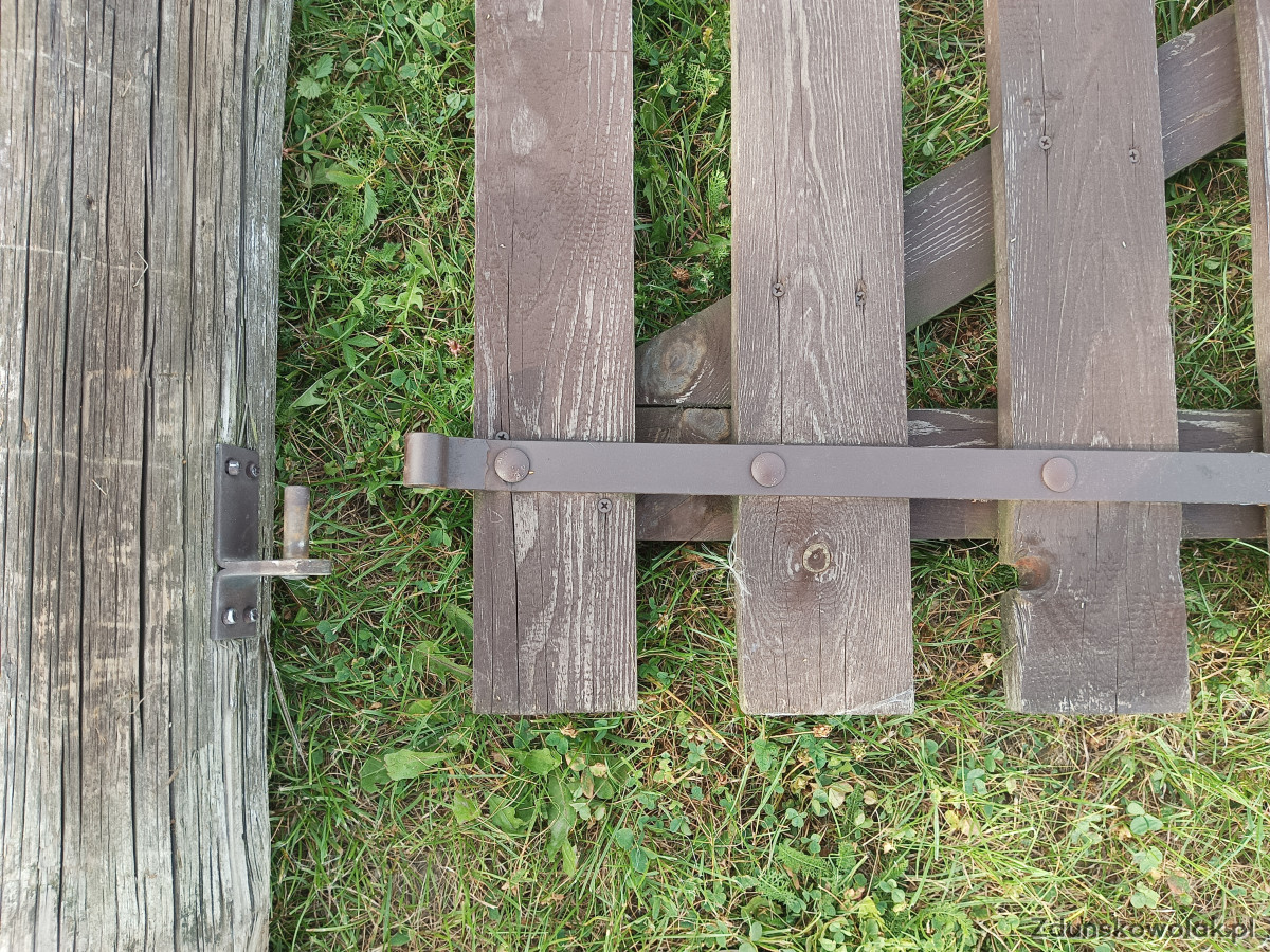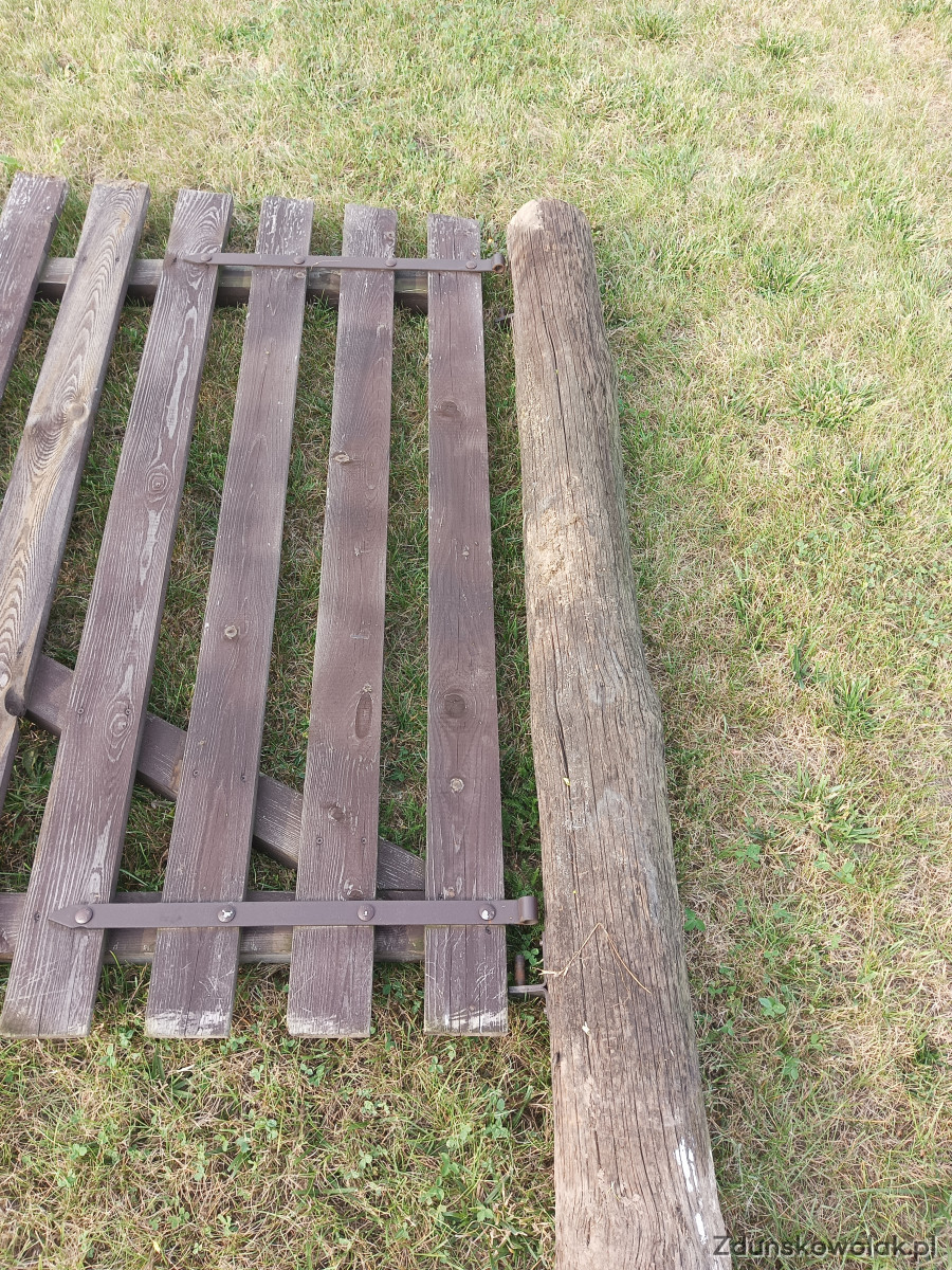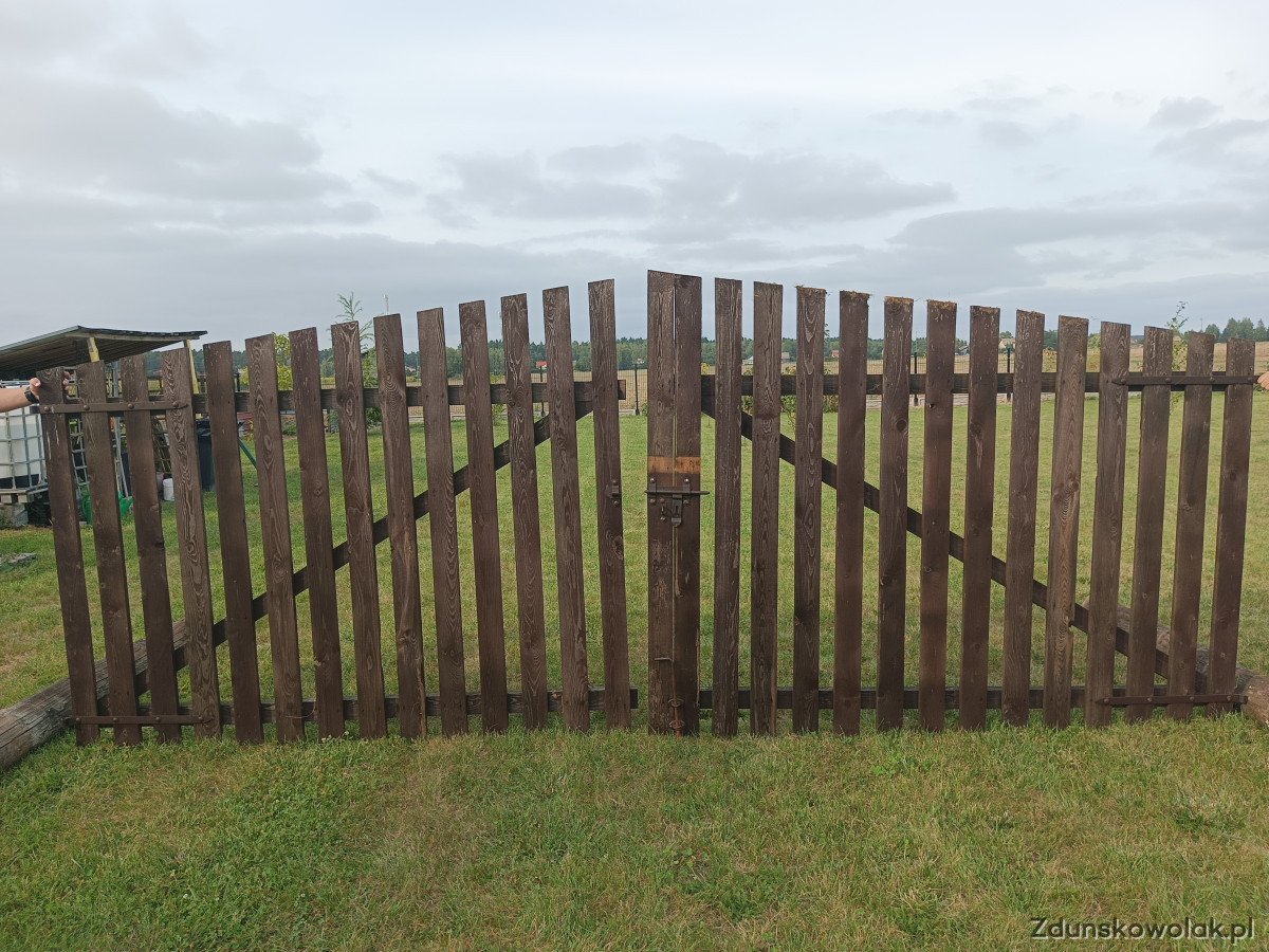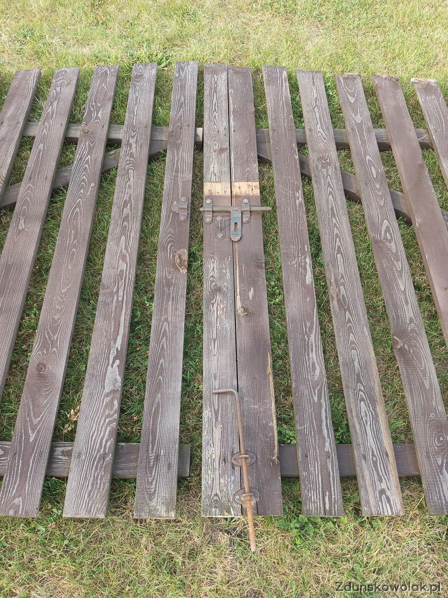 Sprzedam bramę drewnianą na budowę lub działkę. Szerokość 4,5 metra, brama gotowa do montażu, że słupami i okuciami