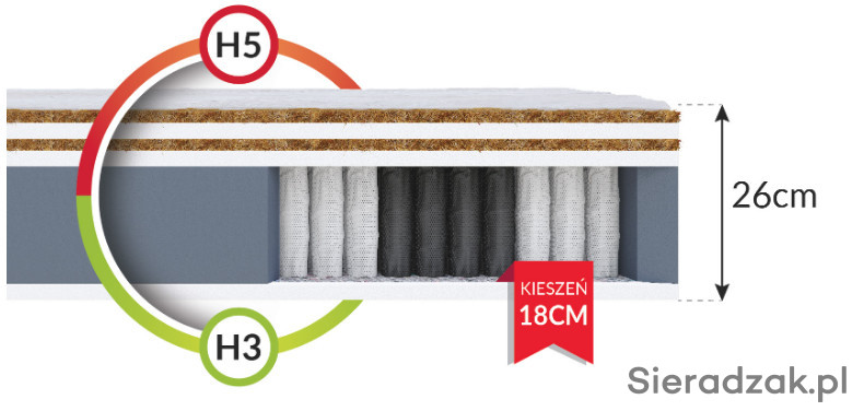 Materac obustronny – H3 średnio twardy i H5 bardzo twardy