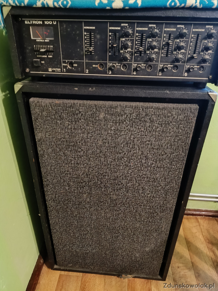 Sprzedam wzmacniacz Eltron 100 U wraz z głośnikiem. Sprzęt mimo swoich lat wciąż na chodzie. Do wzmacniacza mikrofon. Więcej informacji udzielę telefonicznie.
