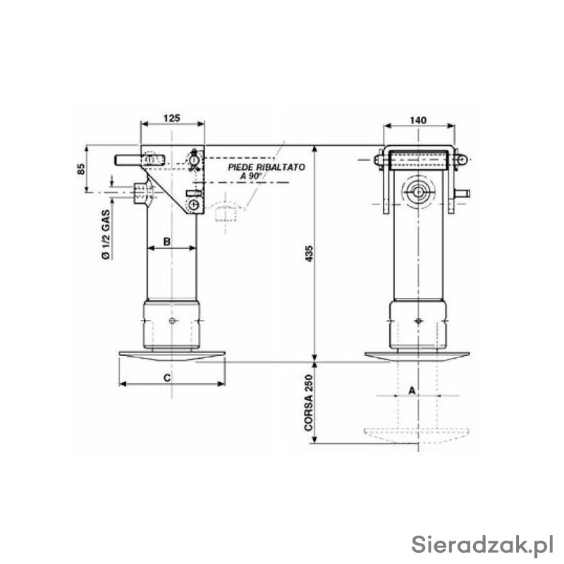 Hydrauliczna stopa podporowa jednostronnego działania ze sprężyną powrotną 5670/8500 kg.
