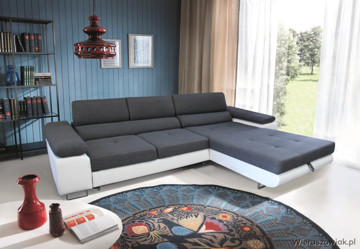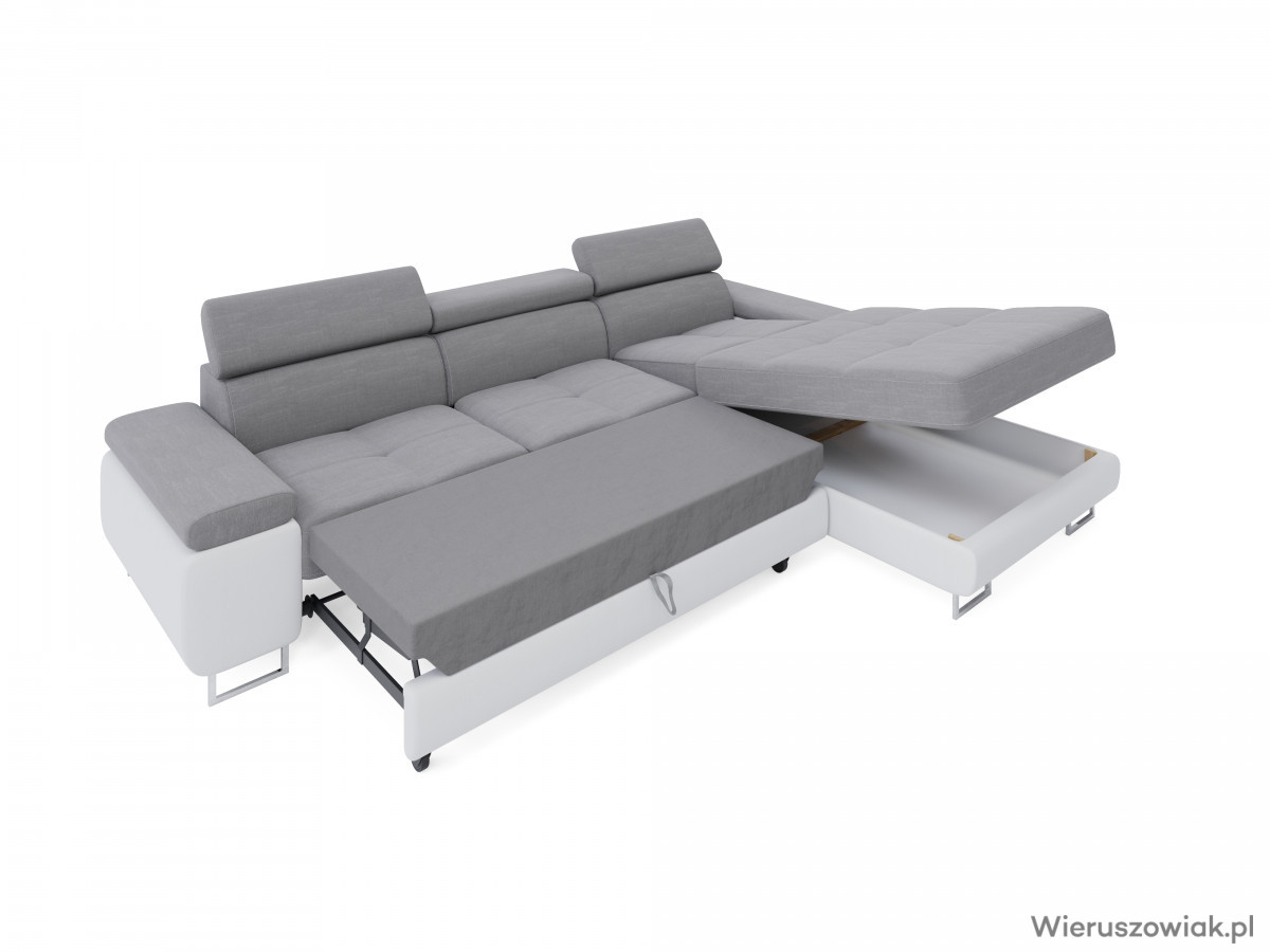 Pojemnik na pościel w otomanie: Narożnik wyposażony jest w praktyczny pojemnik na pościel, zlokalizowany w otomanie. To doskonałe rozwiązanie na przechowywanie pościeli, koców czy poduszek, co pozwala na utrzymanie porządku w salonie i efektywne wykorzystanie przestrzeni.