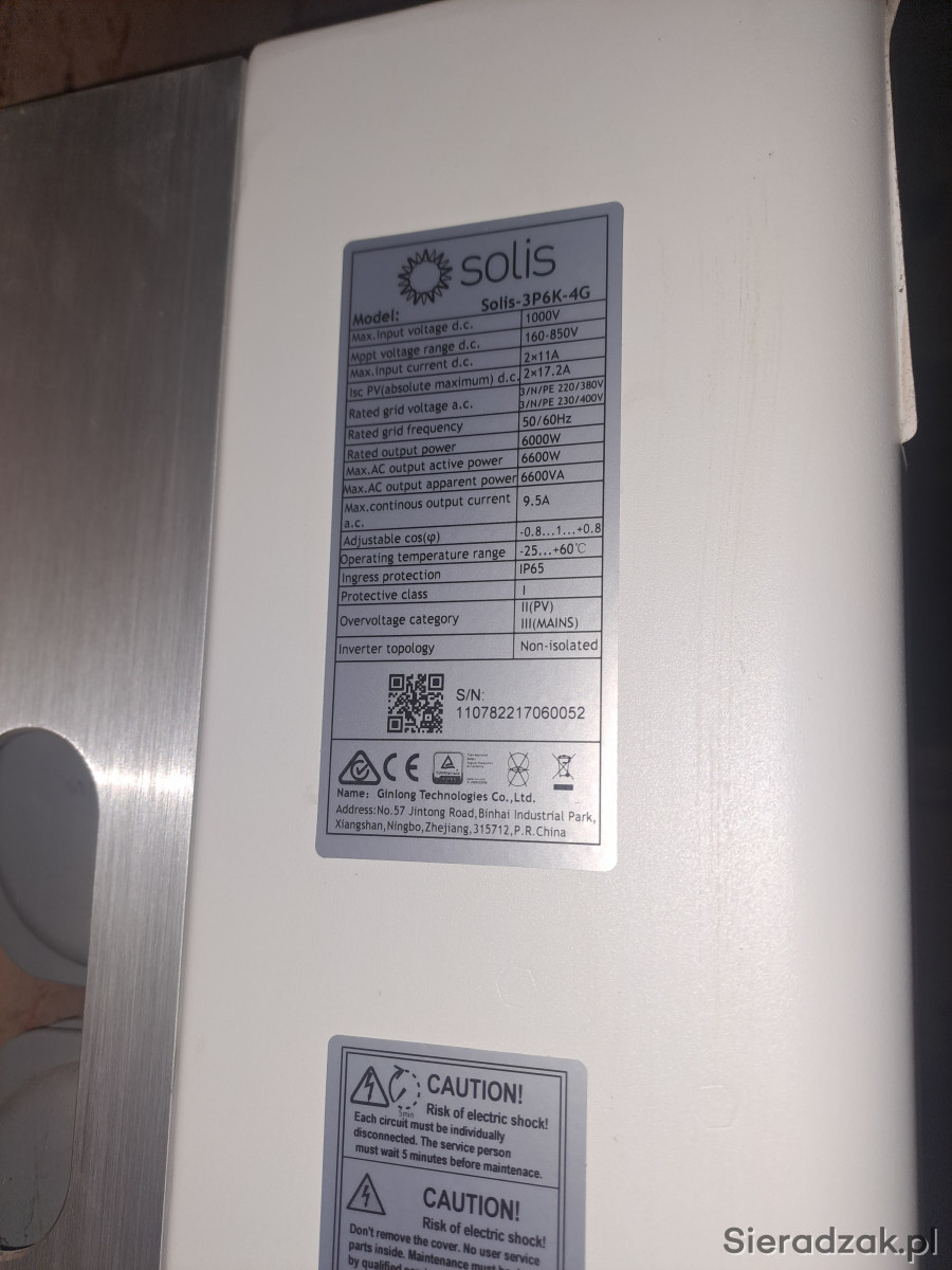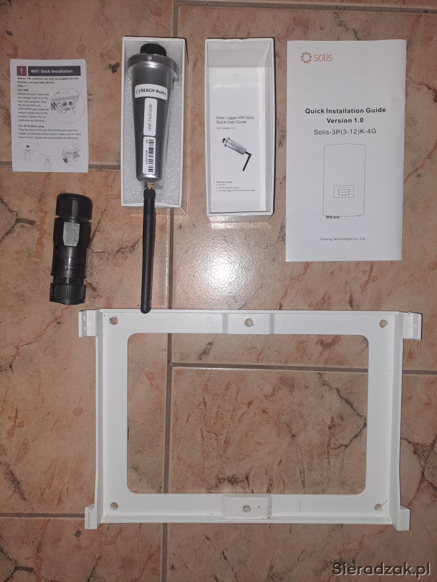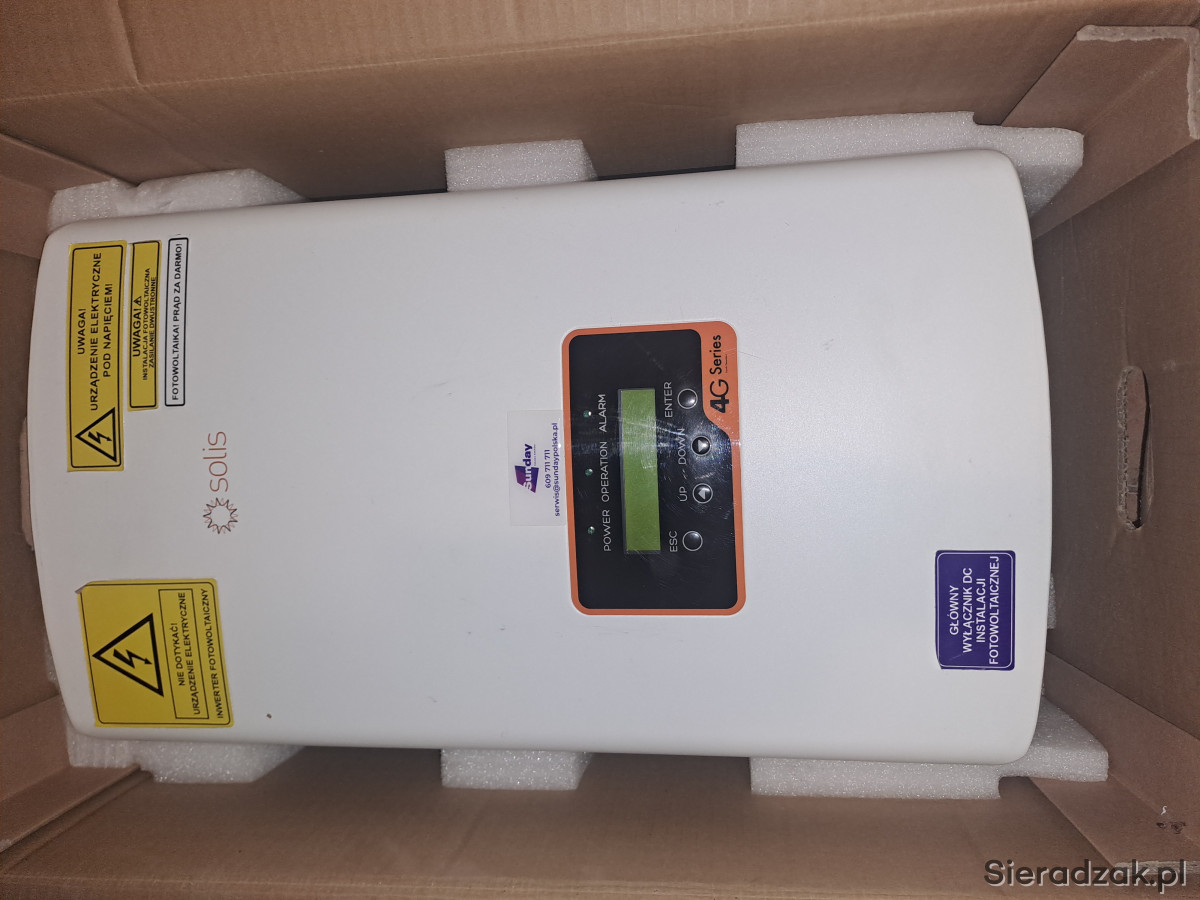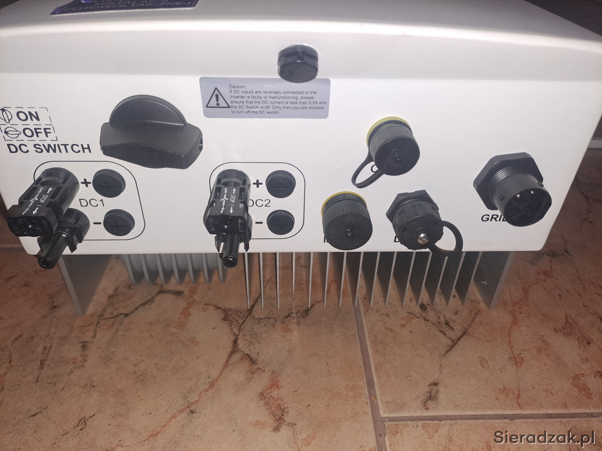 Falownik użytkowany około 2 lat zamontowany był w garażu, w bardzo dobrym stanie, kompletny z pudełkiem, mocowaniami, złączem itd. wszystko to co na zdjęciach. Odbiór osobisty lub wysyłka.