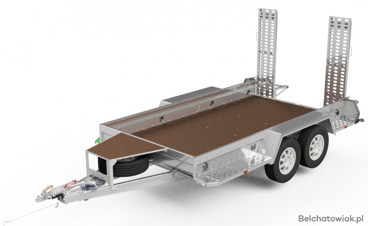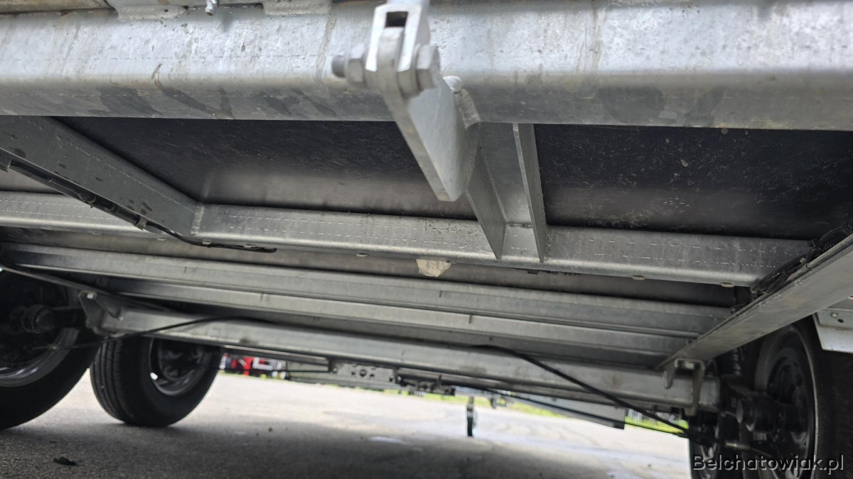 OŚ KNOTT lub SPP - długie podłużnice z bardzo mocnym dyszlem przykręcane na trzy punkty montażowe na wysokości osi, przyczepa jest ciągnięta za oś nie za ramę. Takie połączenie gwarantuje jeszcze większą stabilność i wytrzymałość przyczepy. Burty stalowe, walcowane na zimno bardzo mocne gwarantują większa sztywność i wytrzymałość – szerokość 30mm i wysokości 270mm.