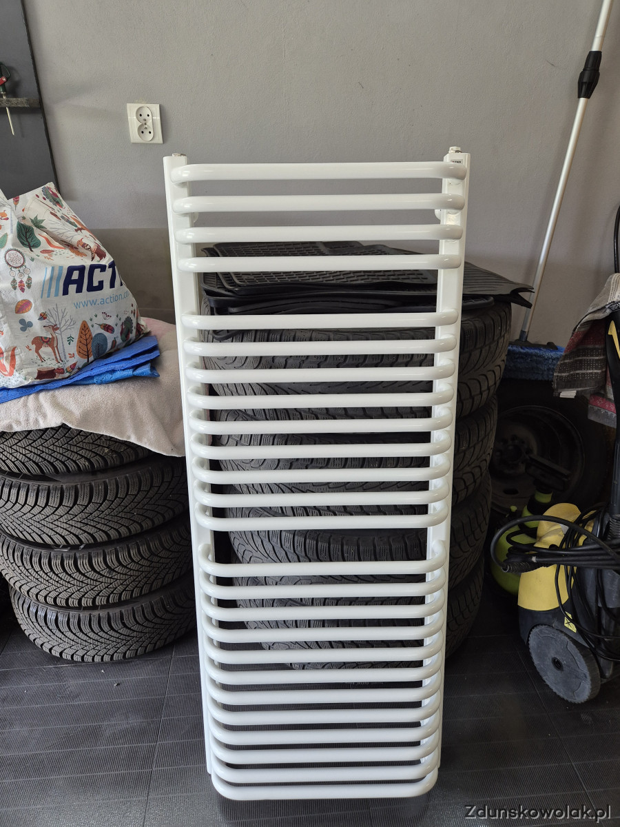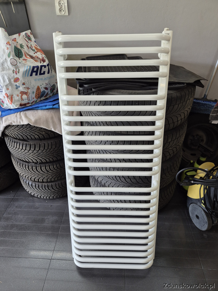 Oferuję roczny grzejnik łazienkowy o wymiarach 122x50. Przyłącze dolne - rozstaw 45cm.