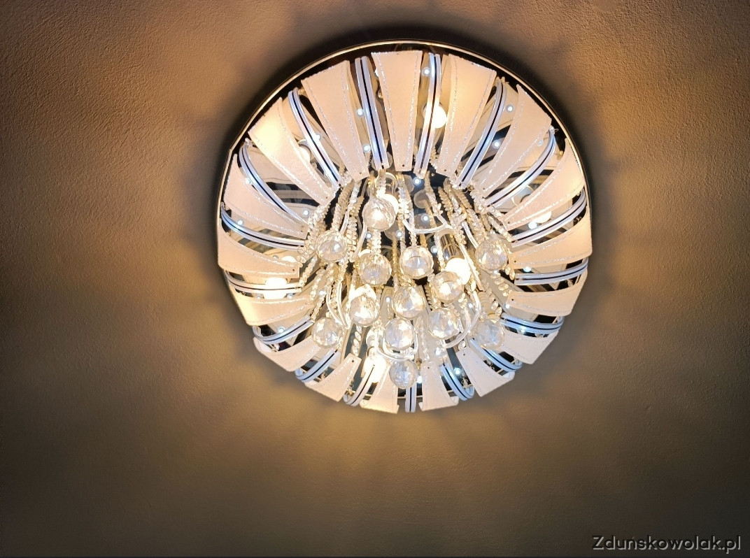 Elegancka, nowoczesna lampa sufitowa z funkcją LED. Wykonana z wysokiej jakości materiałów, z dekoracyjnymi kryształkami, która nada wnętrzu niepowtarzalny charakter. Idealna do oświetlenia salonu, sypialni lub innego pomieszczenia.