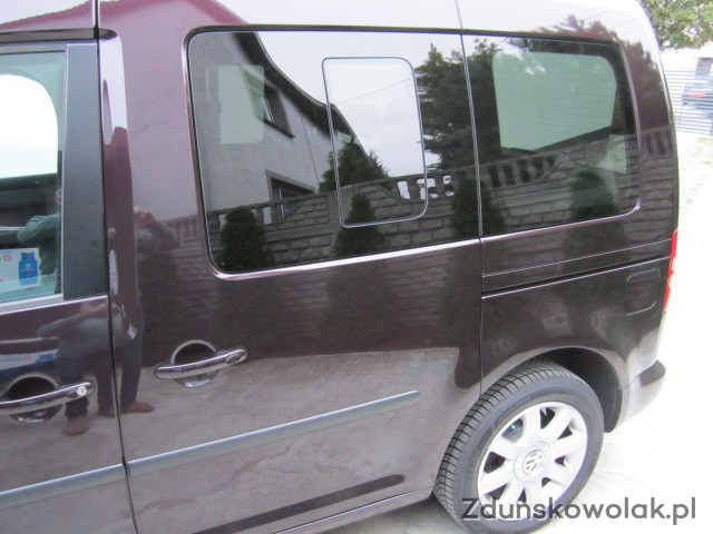 Wyposażenie m.innymi: światła przednie xenonowe ze spryskiwaczami reflektorów i doświetlaniem zakrętów, światła dzienne led, drzwi tylne rozsuwane z dwóch stron z otwieranymi szybkami, szyby oryginalnie przyciemniane, duże radio dotykowe z nawigacją, klimatronik, klimatyzowany schowek, podgrzewane fotele, alufelgi oryginalne vw, zderzaki w kolorze nadwozia, halogeny, hak, rylingi dachowe, czujniki cofania i wiele innych.