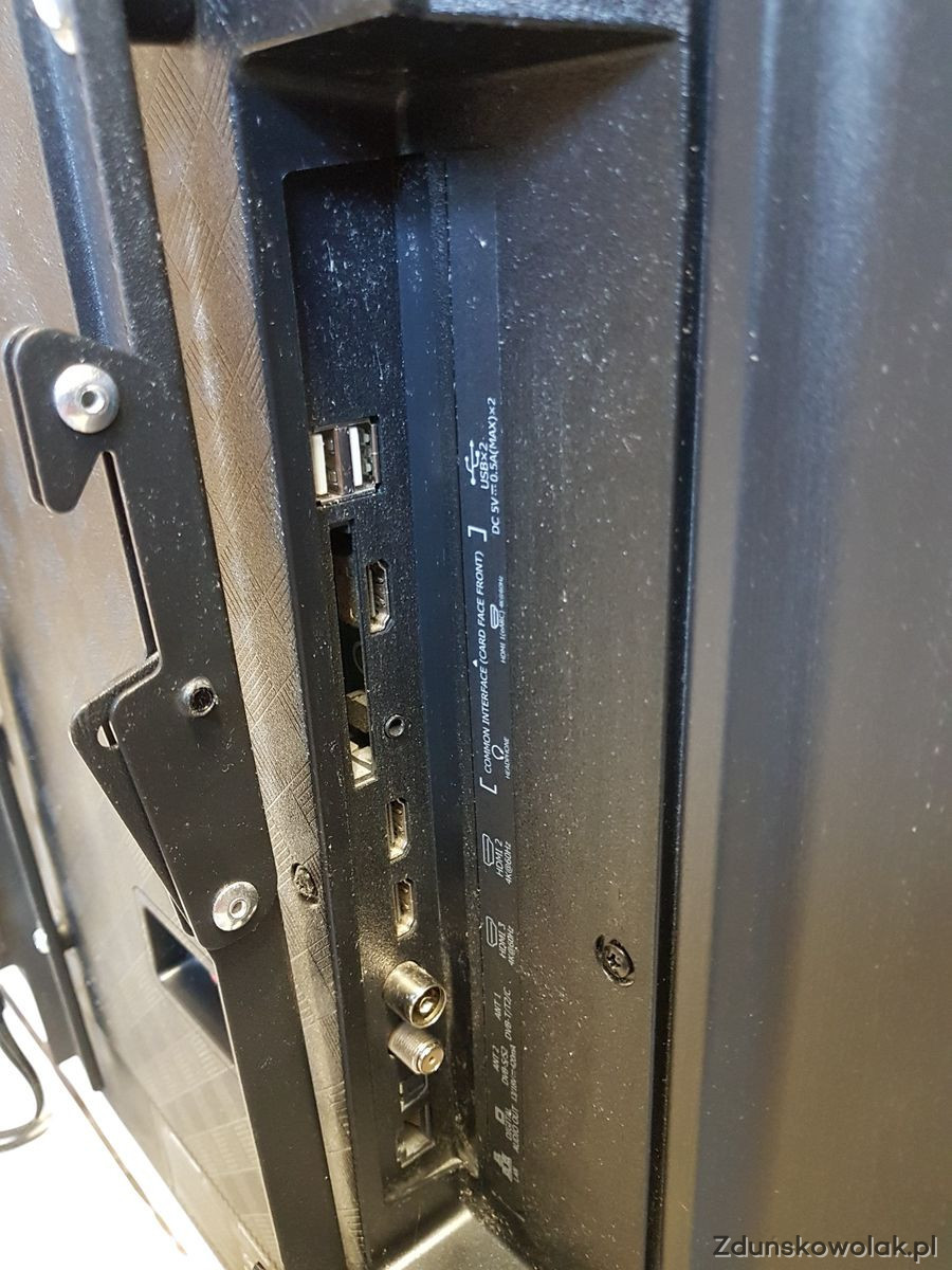 Złącza: 3 × HDMI, 2 × USB, wyjście audio, porty antenowe
