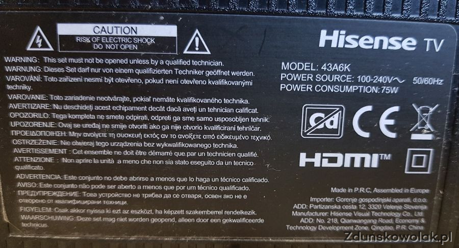 TELEWIZOR HISENSE 43A6K UHD 4K