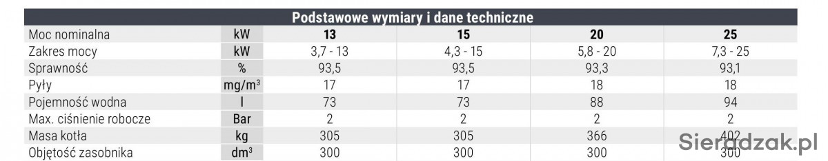 Dostępne kotły o mocy nominalnej: 13kW 15kW 20kW 25kW