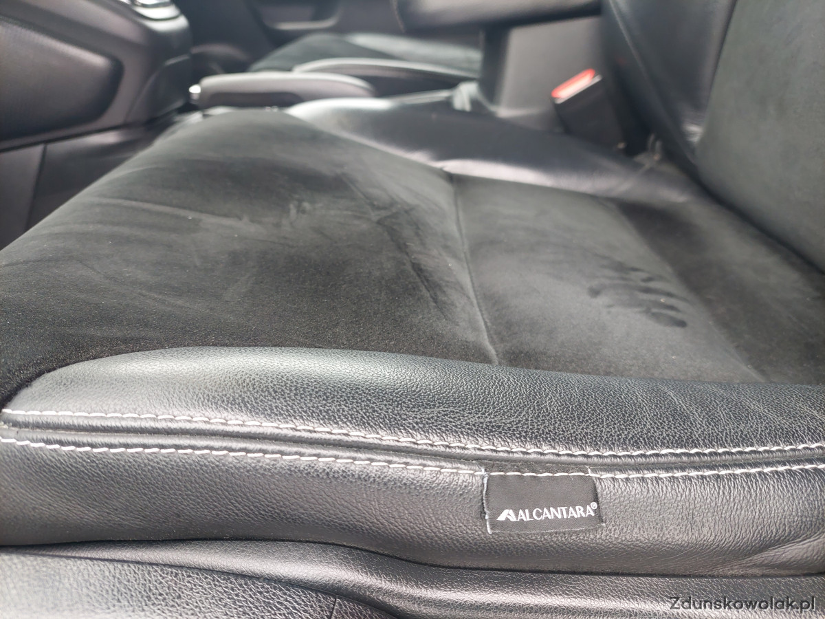 -Skórzaną tapicerkę połączoną z Alcantarą.