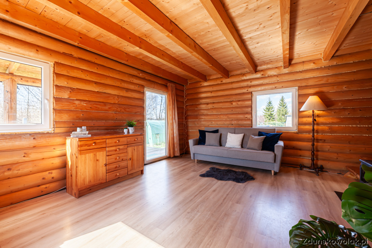 Na sprzedaż działka powierzchni 1163 mkw z domem z bali w Zduńskiej Woli przy ul. Marzenińskiej.
