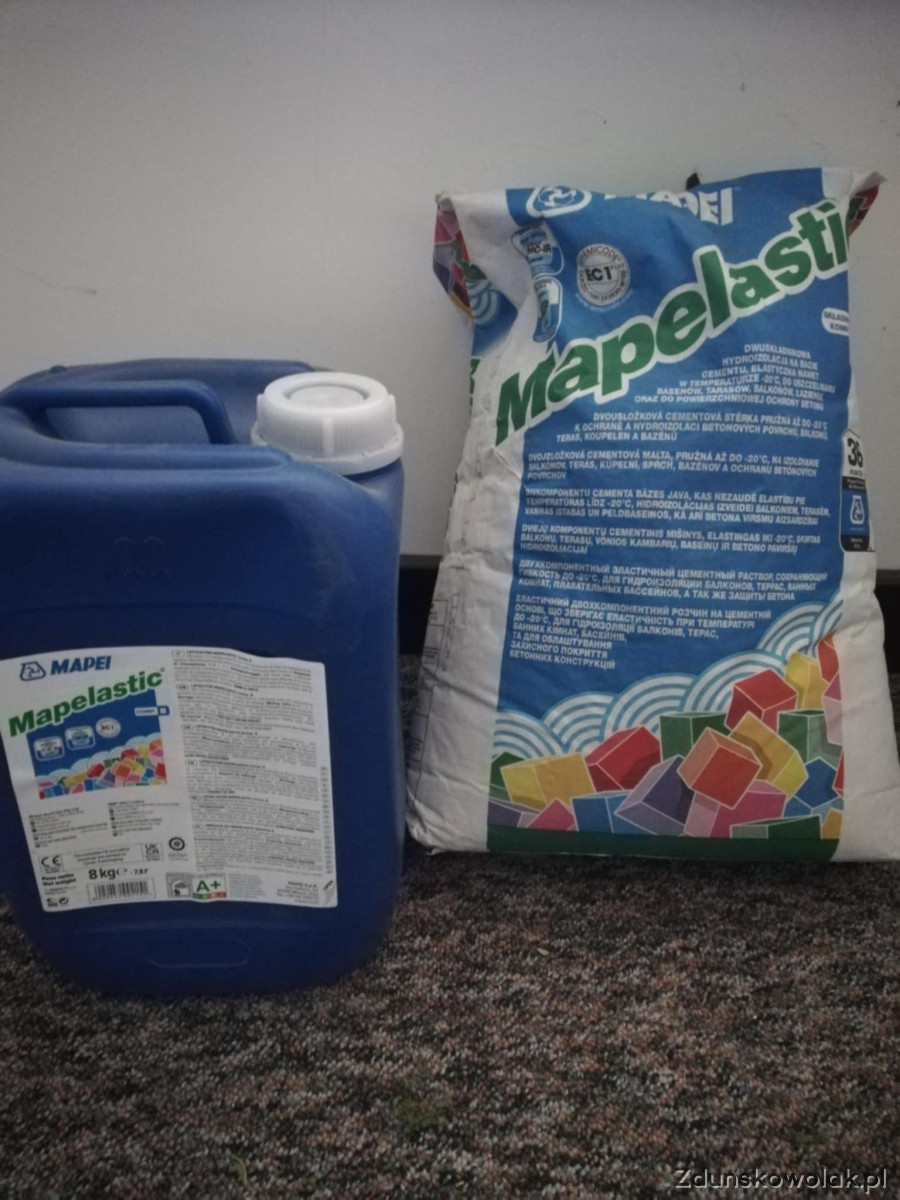 Sprzedam elastyczną, dwuskładnikową izolacje przeciwwodną na bazie cementu i żywic syntetycznych do uszczelniania balkonów, tarasów, łazienek i basenów.