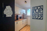 - Zabudowa kuchenna z budowanym piekarnikiem (SAMSUNG) , wbudowaną lodówką (marki HAIER), okapem oraz płytą indukcyjną (marki ELECTROLUX).