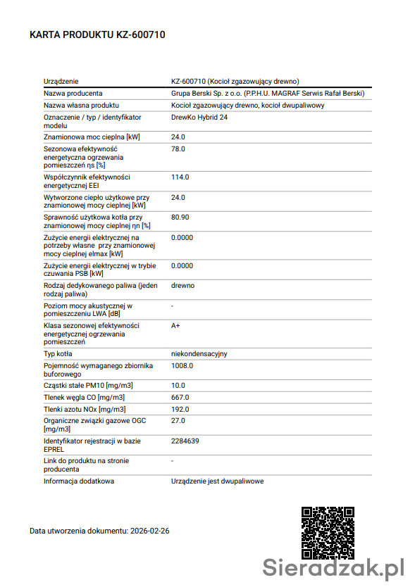 • Klasa energetyczna: A+ (pełna zgodność z normą EN 303-5:2021 oraz Ecodesign)