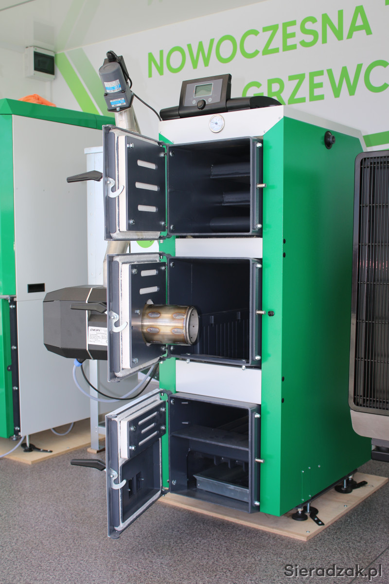 Kocioł został wyposażony w samoczyszczący palnik z obrotową komorą spalania KIPI. Rozwiązanie to zapewnia stabilny proces spalania, wysoką efektywność oraz ograniczenie zużycia paliwa przy minimalnej obsłudze.