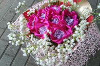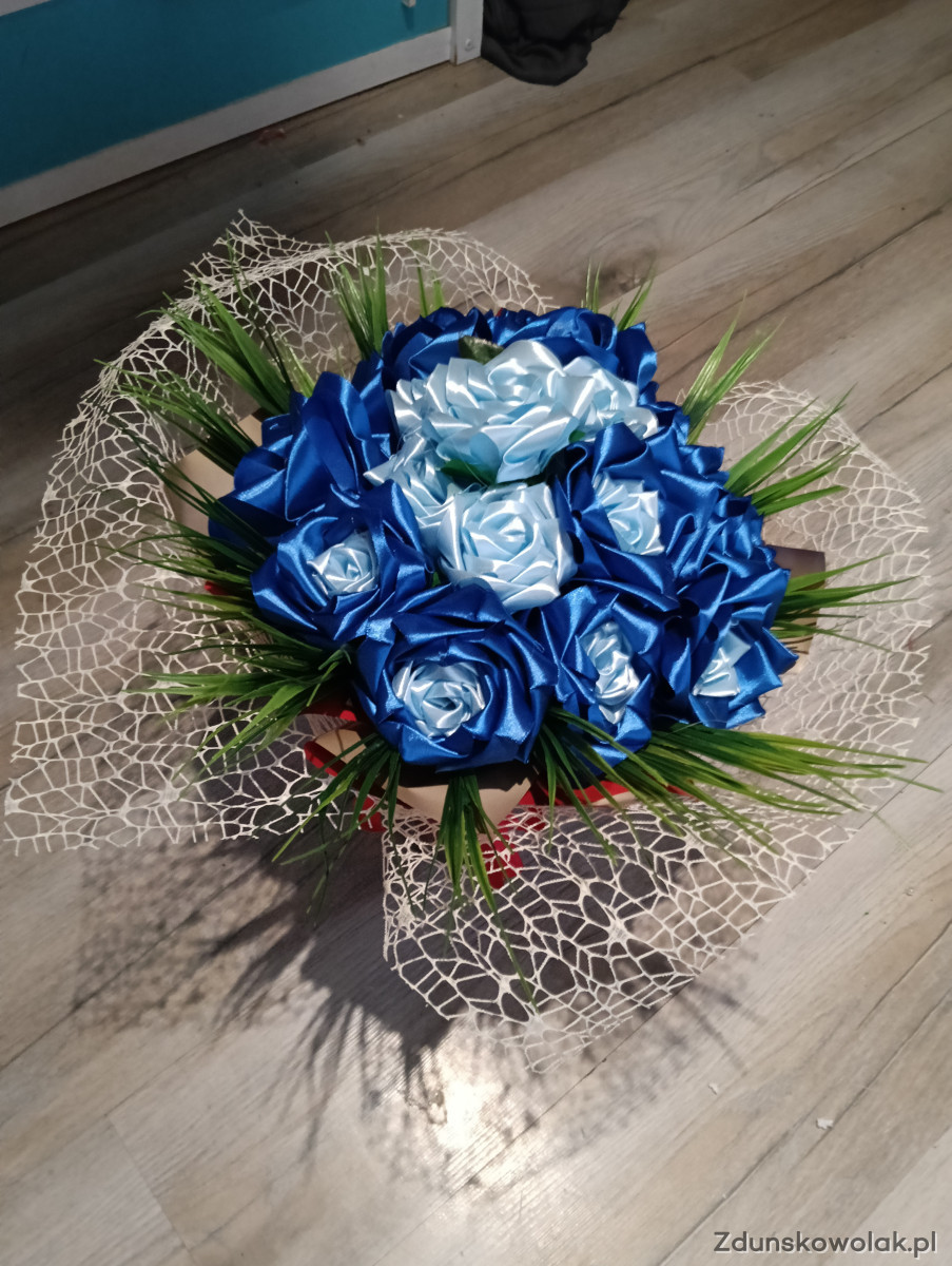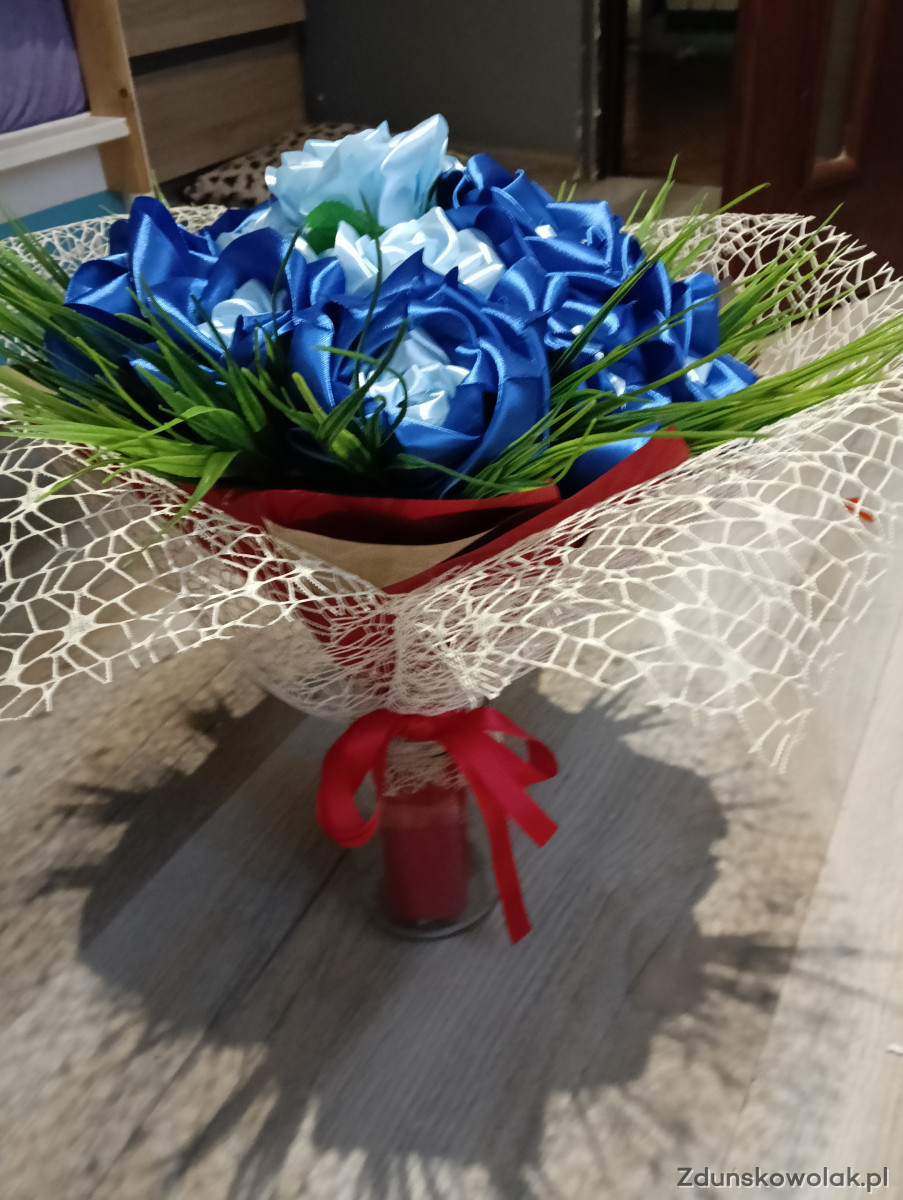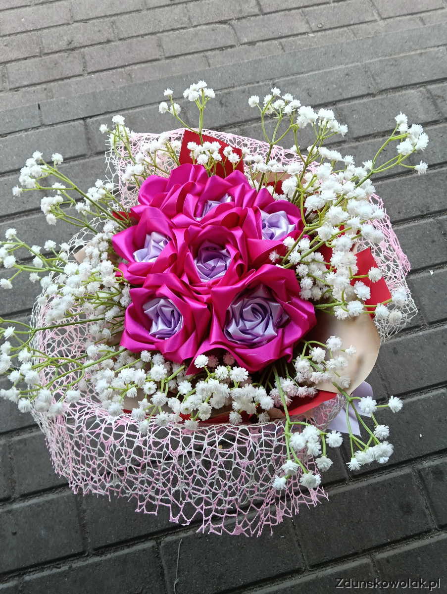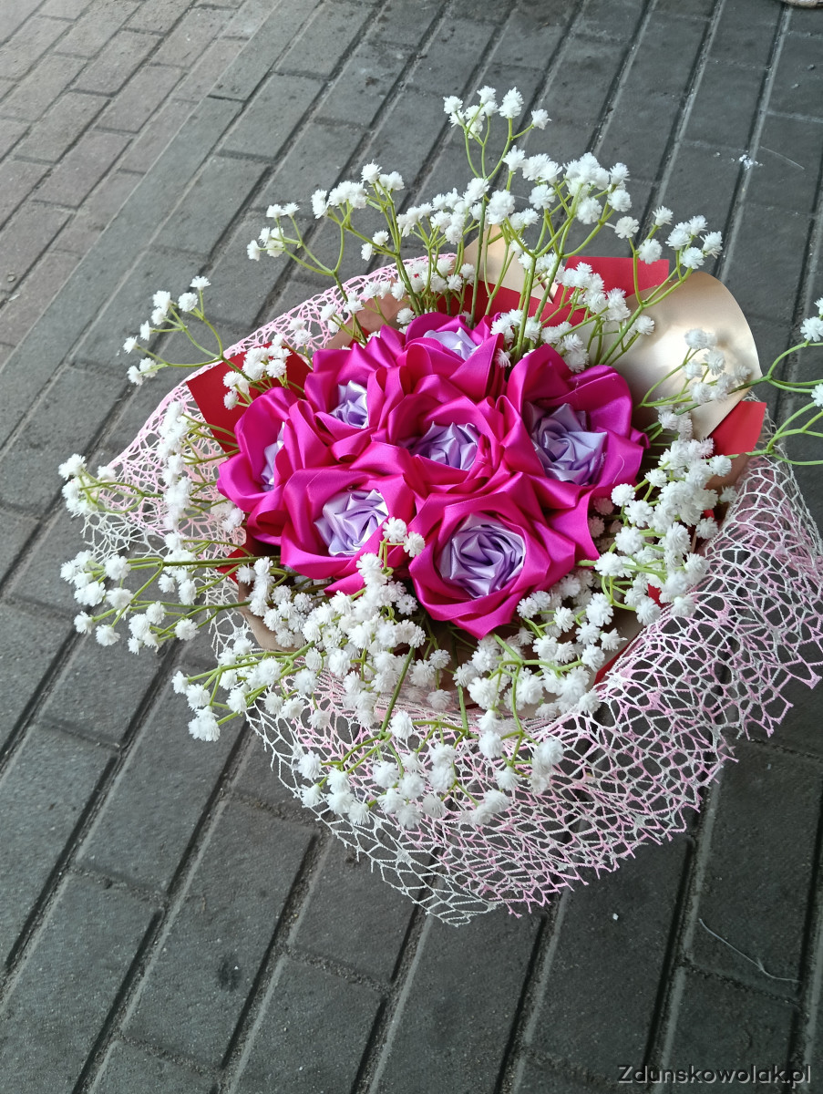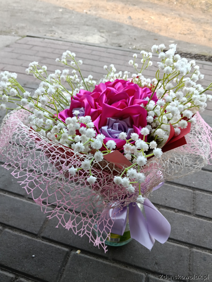 Kwiaty wykonane z wstążki własnoręcznie zrobione