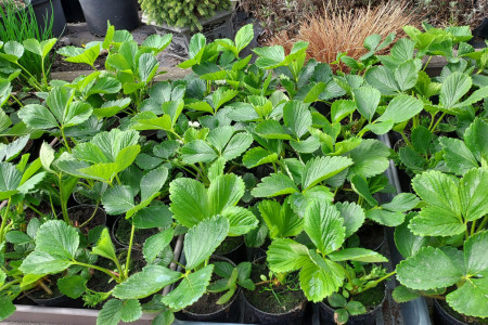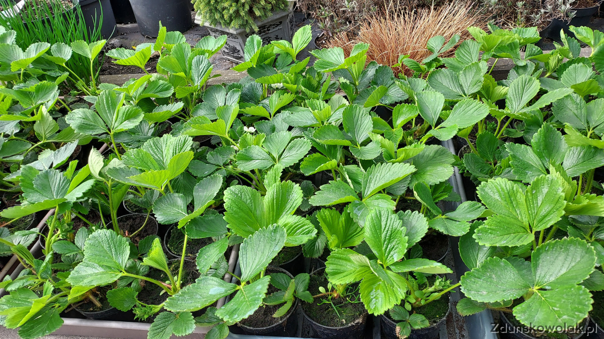 Truskawki wczesne Aprica,Laurowisnie,duzy wybor kwiatow rabatowych balkonowych oraz bylin wieloletnich i roslin wysokich kwitnacych na wysokiej nodze oferuje sklep ogrodniczy Dzialkowiec Zdunska Wola ul.Grabowa 8,Czynne od poniedzialku do soboty w godz 8-19