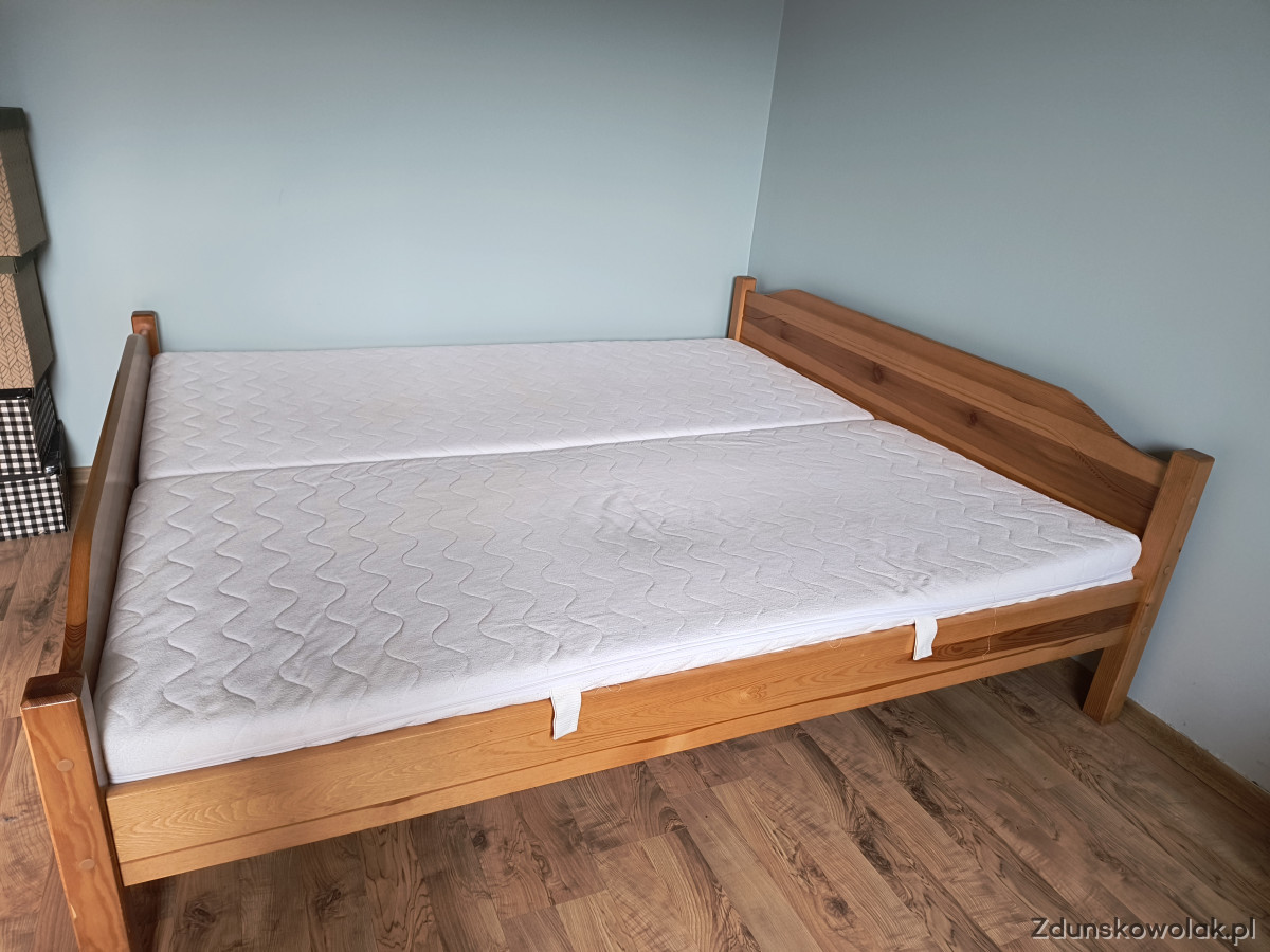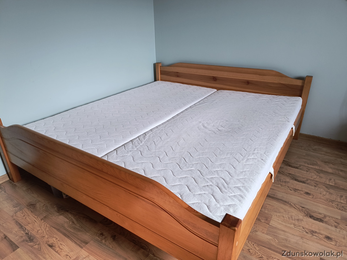 Sprzedam duże łóżko drewniane z materacami o wymiarach 180/200 cm. Łóżko jest w bardzo dobry stanie. Odbiór osobisty