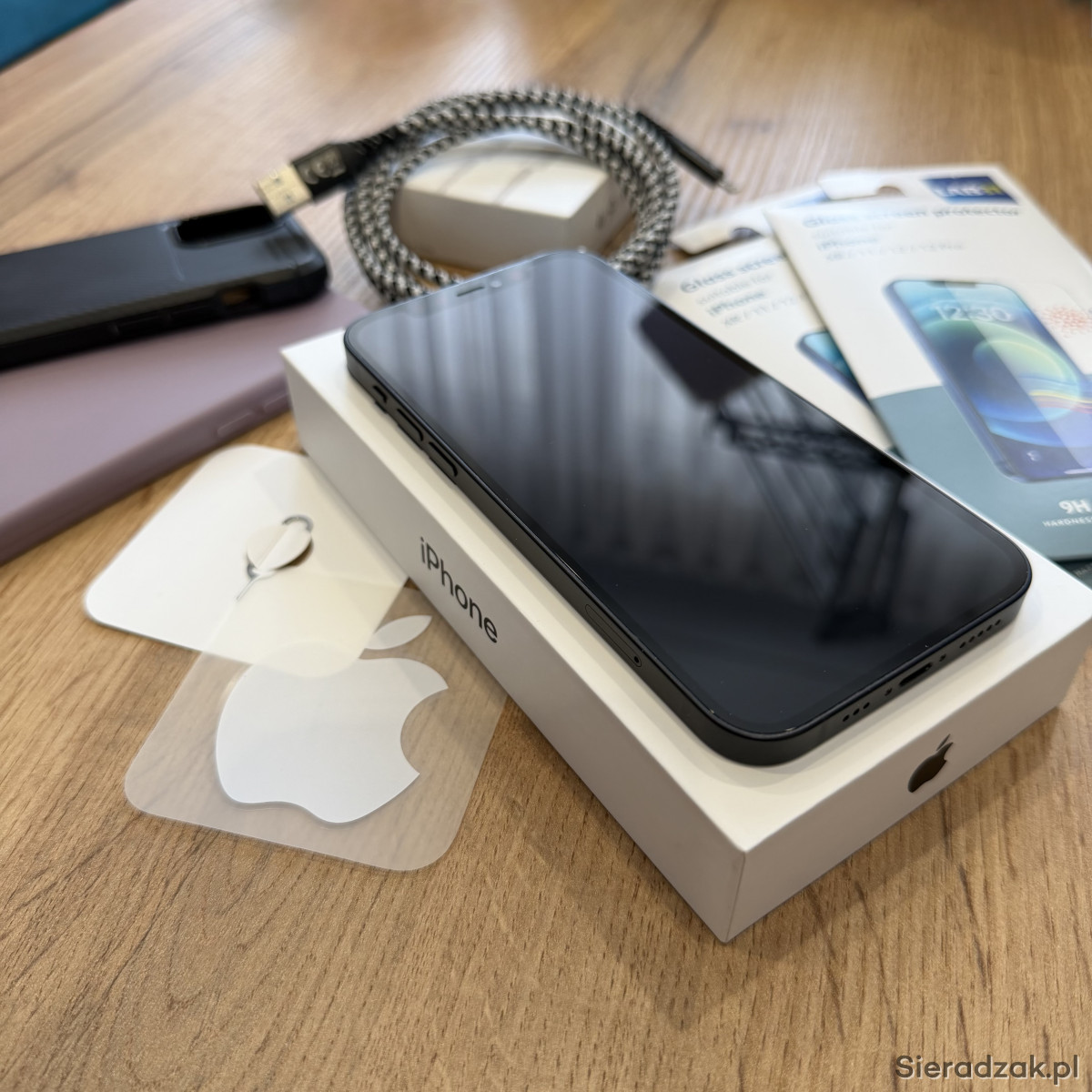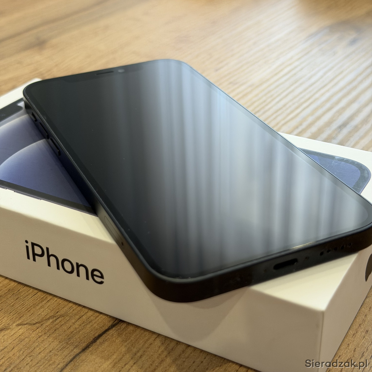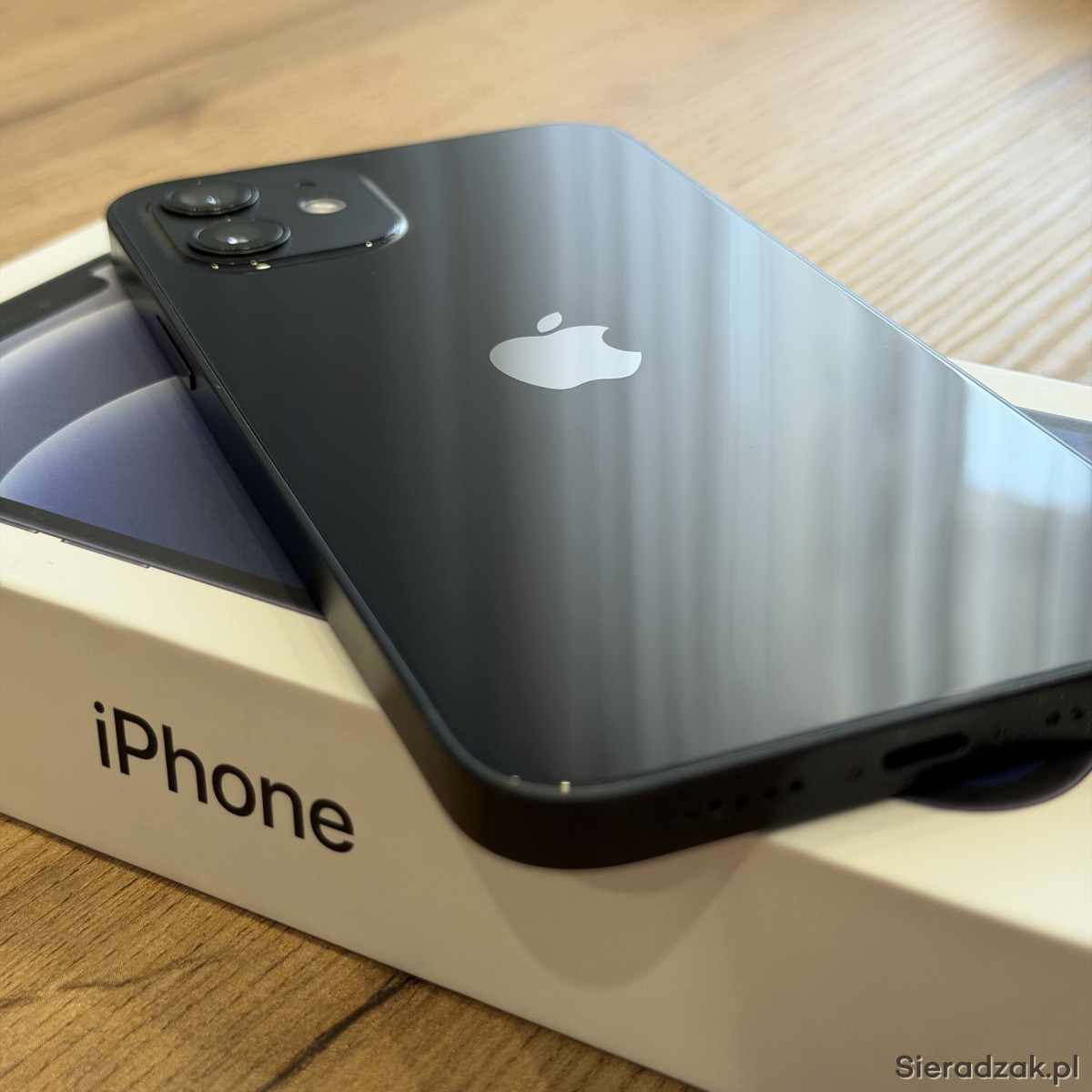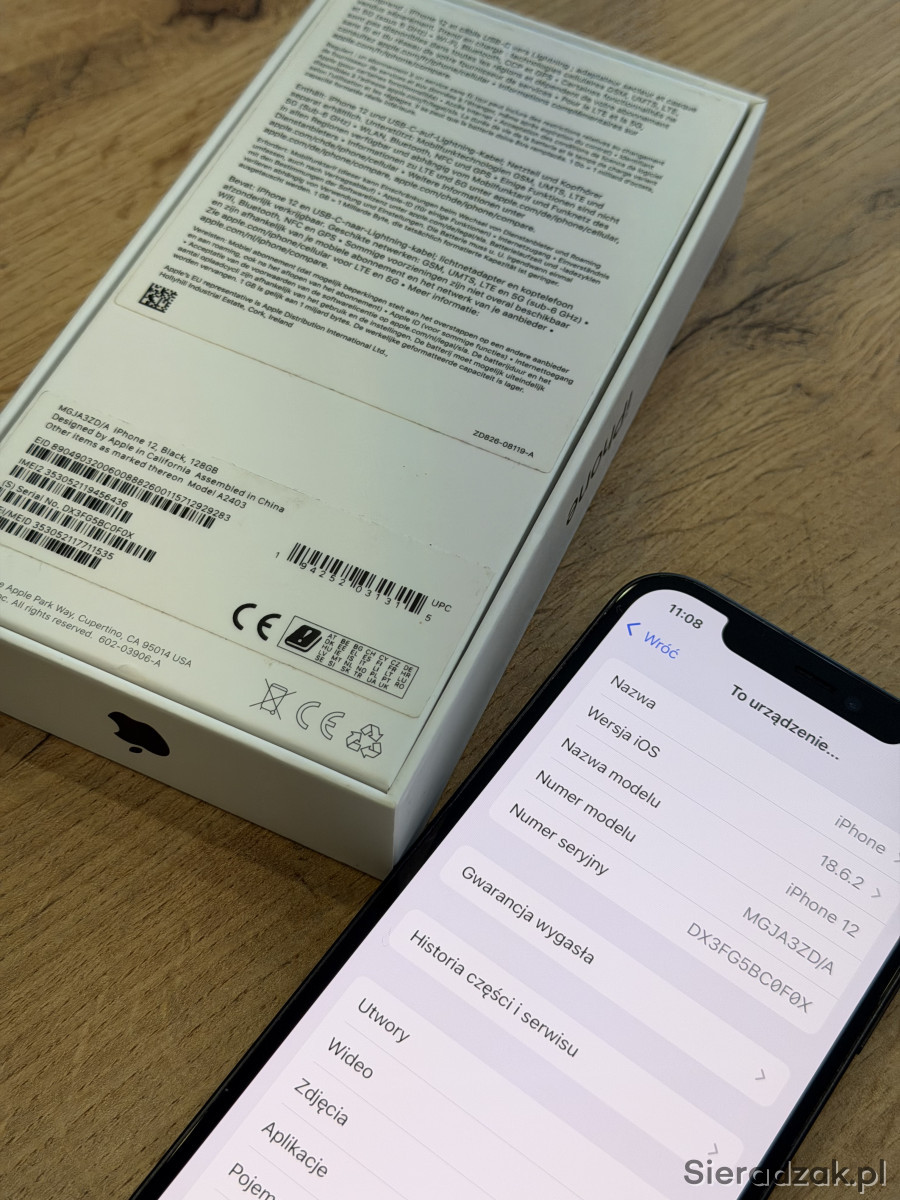 Używany iPhone 12 128GB w kolorze czarnym, w zestawie znajduje się: